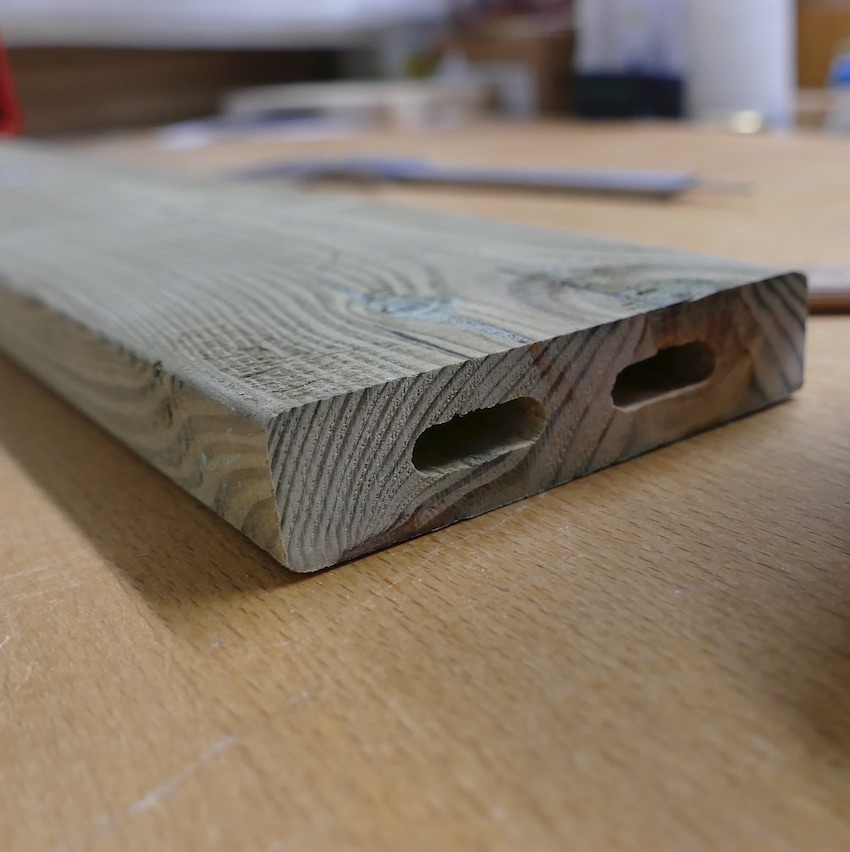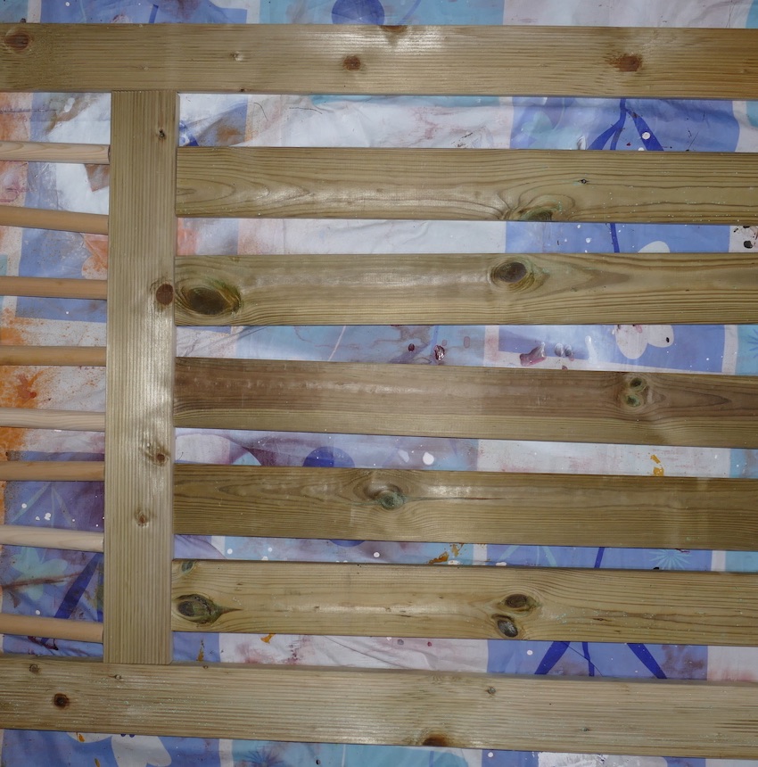Die Verbesserungen sehen wie folgt aus: Anstelle von unbehandeltem Fichtenholz, verwendete ich druckimprägniertes Kiefernholz. Das Türchen ist jetzt ein Tor, denn es wurde um 30cm höher konstruiert. Für den Zusammenbau verwendete ich zum einen Holzdübel aus Eiche und zum anderen Holzdominos aus Sipo.